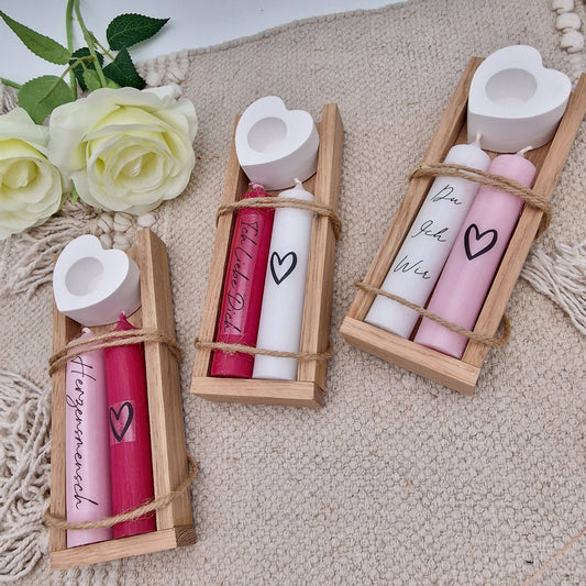 Geschenkset Kerzen in Holzbox Valentinstag