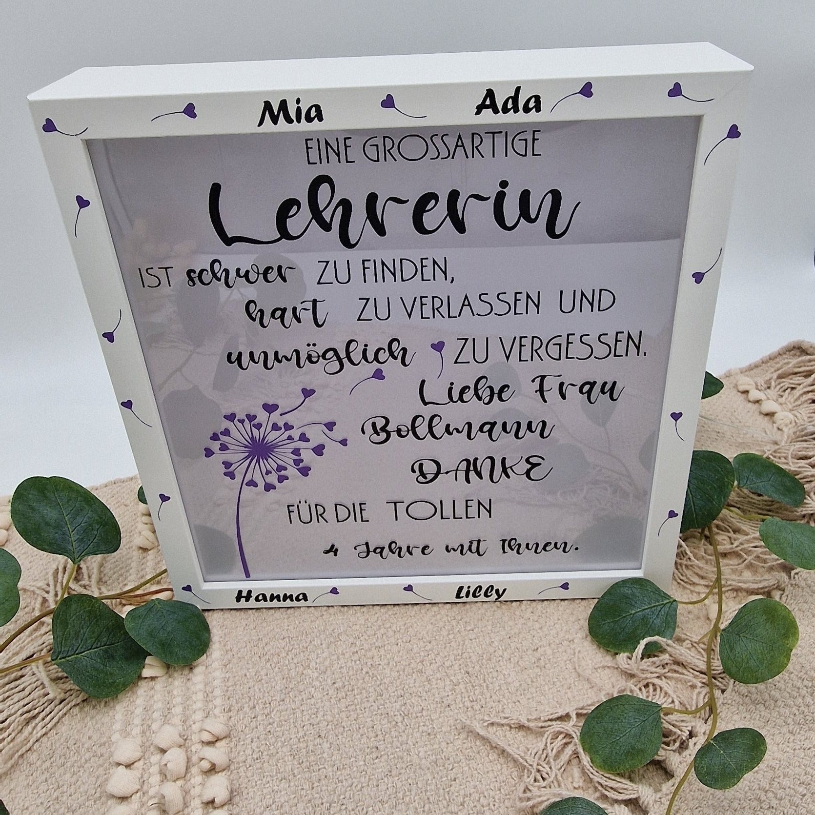 Beleuchtete Bilderrahmen als personalisiertes Abschiedsgeschenk für Lehrer Gib deinem liebsten Lehrer einen herzlichen Abschied mit einem beleuchteten Bilderrahmen als personalisiertes Geschenk. Unsere hochwertigen Rahmen sind nicht nur eine wunderschöne Dekoration für jedes Zuhause, sondern auch eine emotionale Erinnerung an die gemeinsame Zeit. Jeder Rahmen wird individuell mit dem Namen des Lehrers graviert und verfügt über stimmungsvolle Beleuchtung, Zeige deine Wertschätzung mit einem einzigartigen Abschiedsgeschenk, das garantiert für strahlende Augen sorgt.