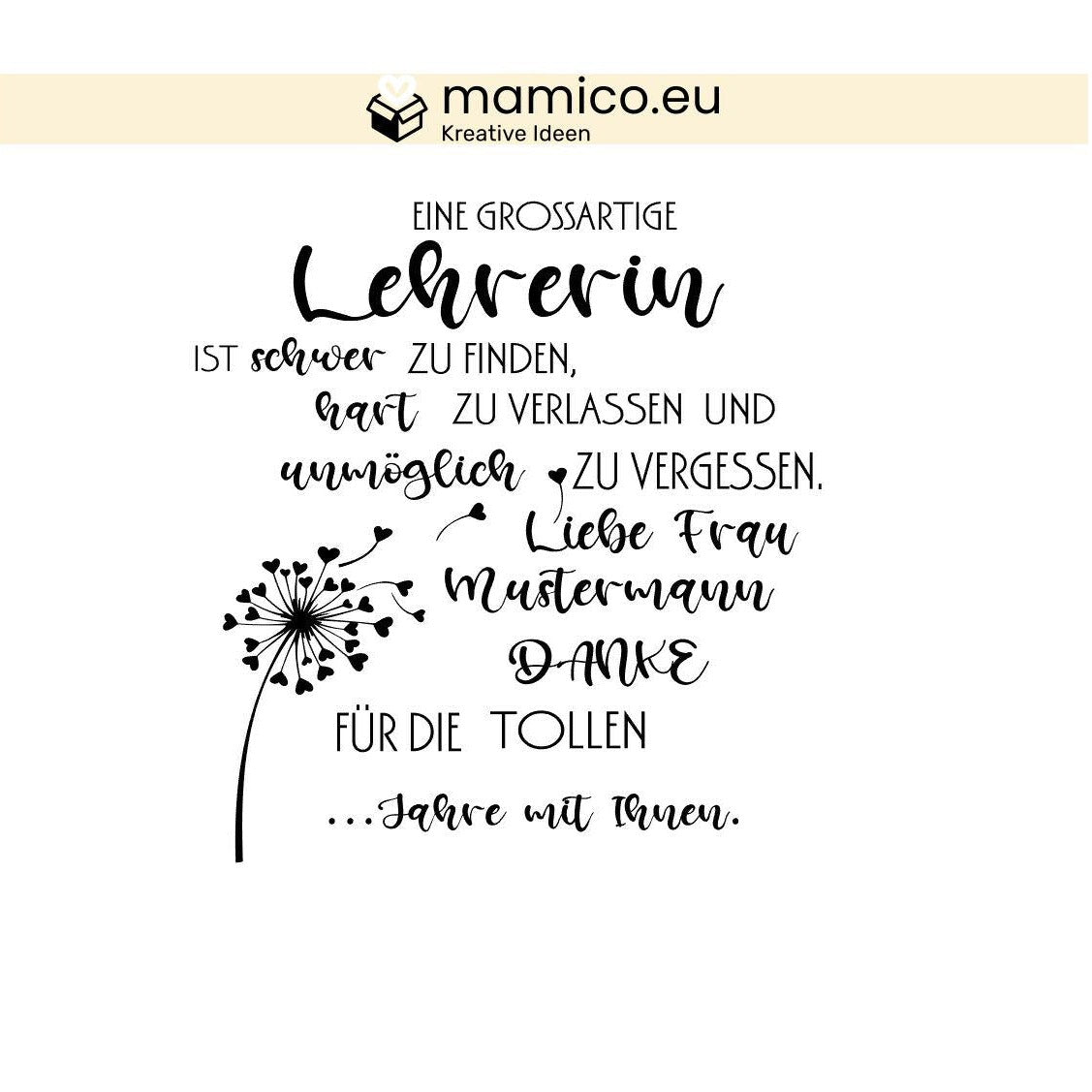 Eine/Ein Großartige/Großartiger Lehrerin/Lehrer ist schwer zu finden, hart zu verlassen und unmöglich zu vergessen. Liebe/Lieber Frau/Herr... Danke für die Tollen... Jahre mit Ihnen.