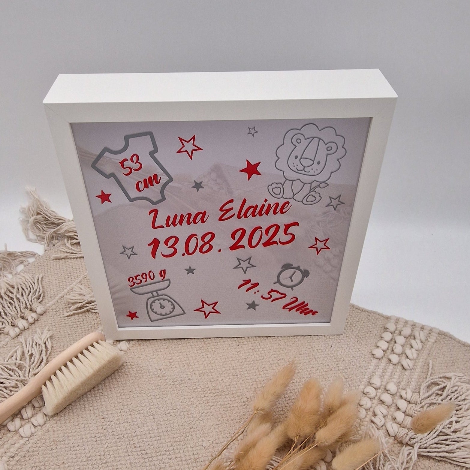 Beleuchteter Bilderrahmen mit Geburtsdaten & Wunschmotiv – Einzigartiges Geschenk fürs Babyzimmer Verschönere das Königreich deines kleinen Wunders mit unserem exklusiven beleuchteten Bilderrahmen! Perfekt angepasst an die Geburtsdaten deines Babys, vereint dieser dekorative Rahmen Ästhetik mit Persönlichkeit. Jedes Stück ist ein Unikat, speziell für dich angefertigt mit liebevollen Details und deinem ausgewählten Wunschmotiv. Diese entzückende Wanddekoration spendet sanftes Licht und schafft eine beruhigende Atmosphäre im Babyzimmer. Ideal als Geschenk zur Geburt oder Taufe, wird dieser Bilderrahmen sicherlich zum herzerwärmenden Blickfang. Mache den neuen Erdenbürger mit diesem wundervoll beleuchteten Erinnerungsstück willkommen und halte die kostbarsten Momente fest.