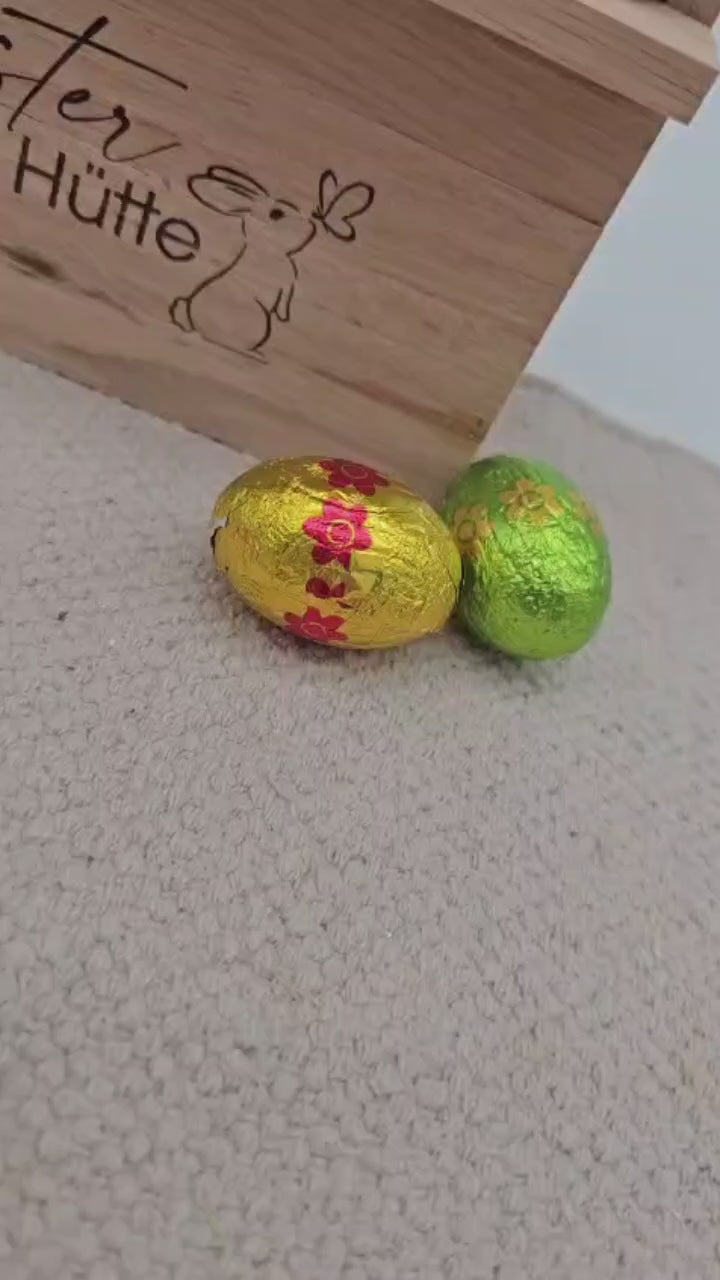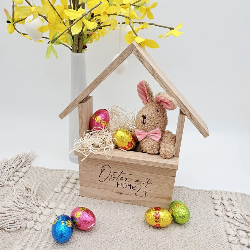 Unsere handgefertigte Osterhütte aus Holz ist eine zeitlos schöne Dekoration für die Osterzeit.